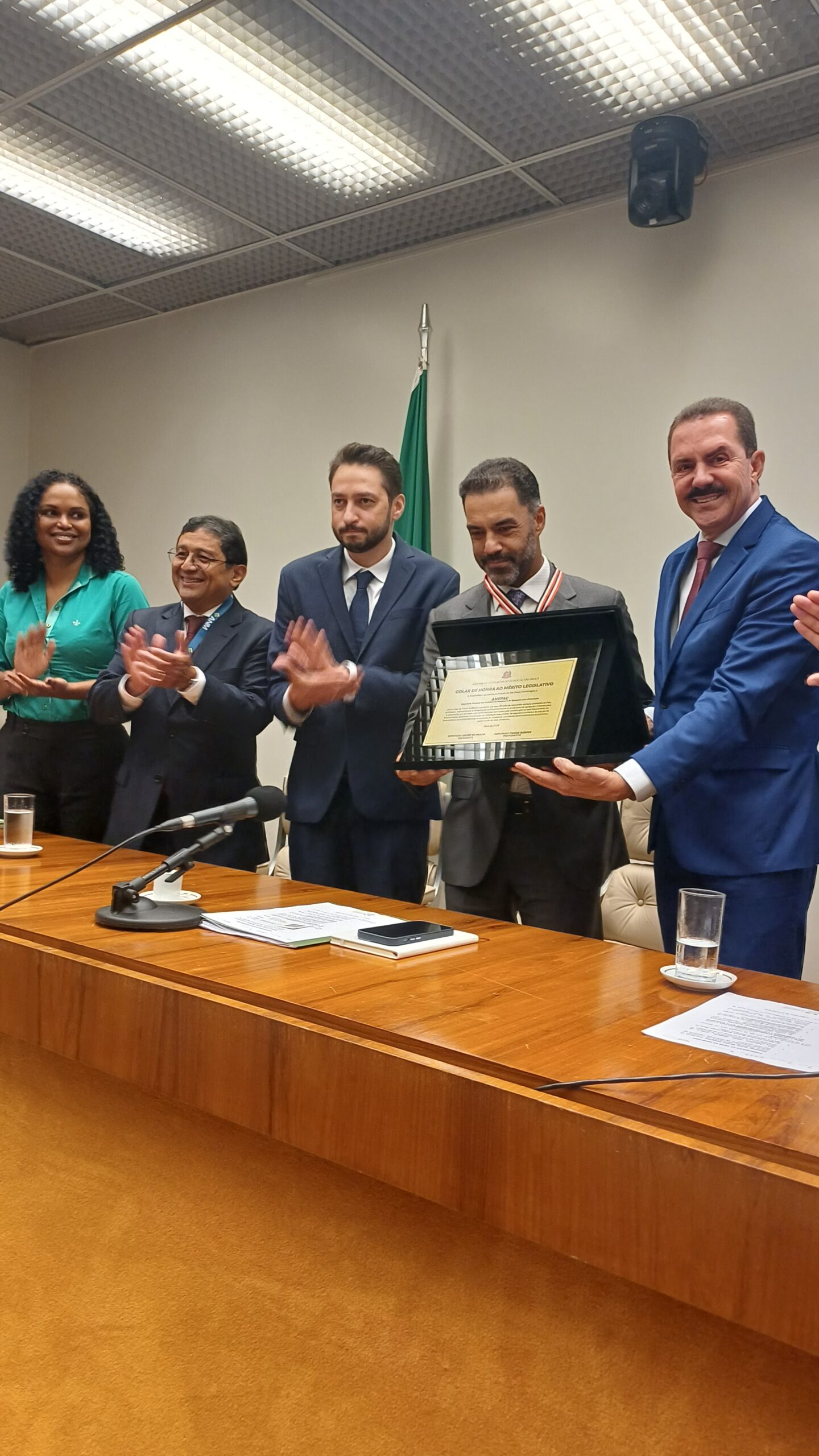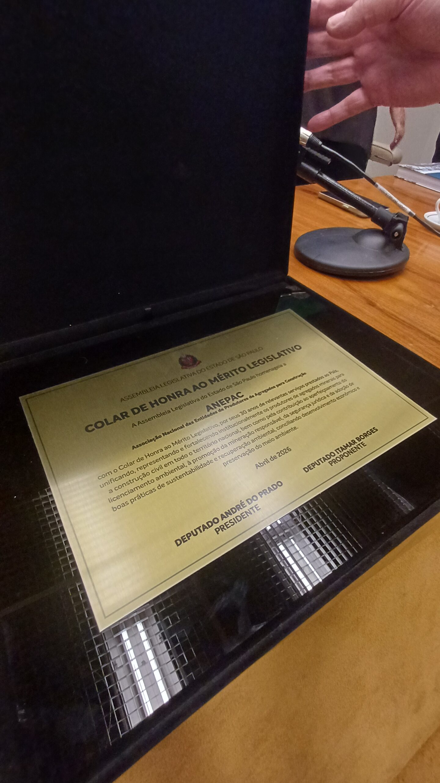 Homenagem — Na ocasião, o presidente do Conselho Diretor da ANEPAC, Carlos Eduardo Pedrosa Auricchio, recebeu, em nome da entidade, o Colar e a Placa de Honra ao Mérito Legislativo, a mais alta honraria concedida pela Assembleia Legislativa do Estado de São Paulo.